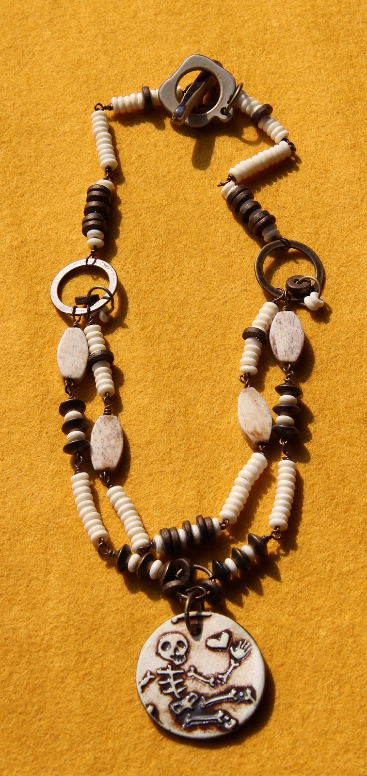 Il était une fois un pendentif de Earthenwood Studio représentant un joyeux squelette amoureux.