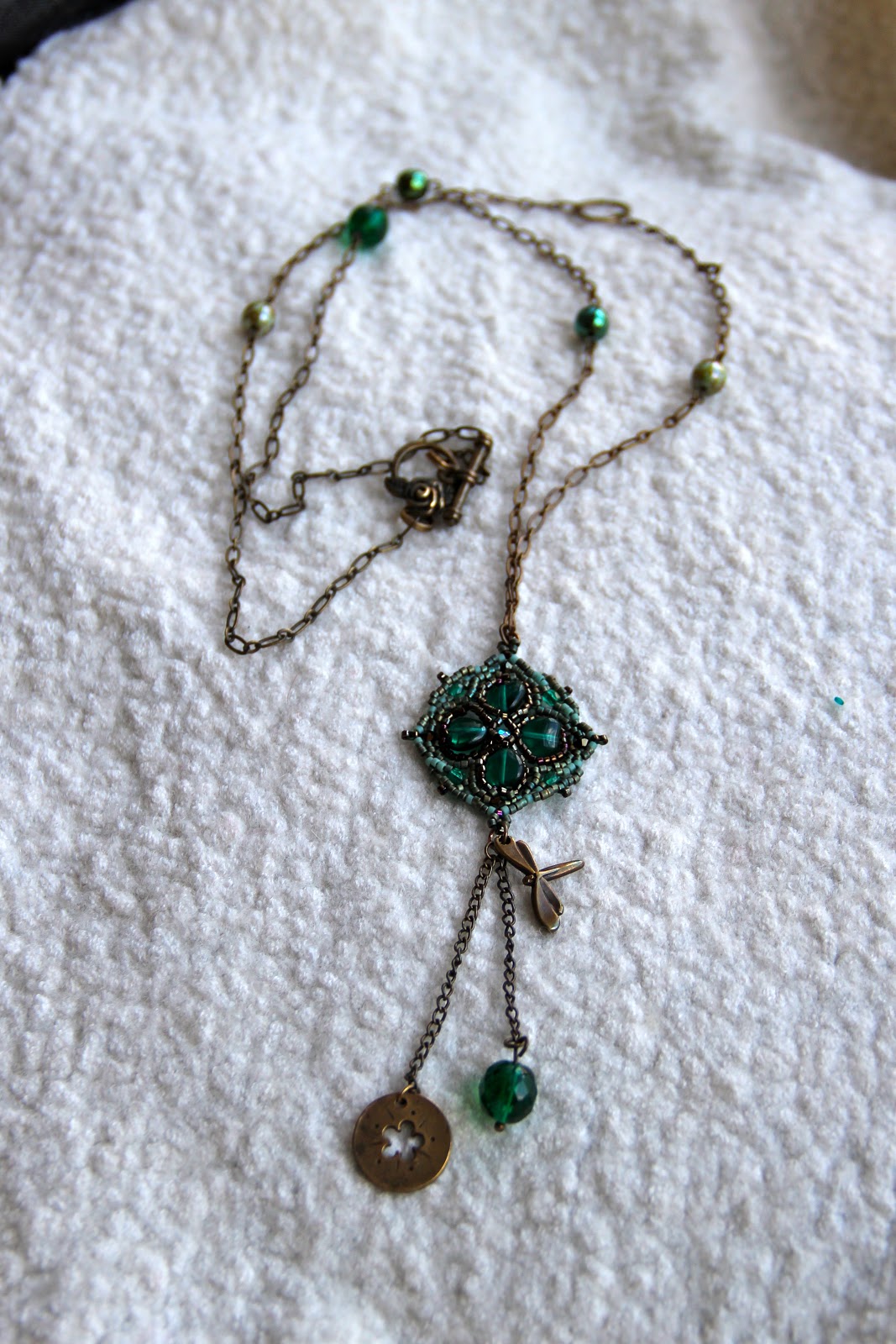 J’ai construit ce sautoir autour d’un pendentif de Marie Géraud.