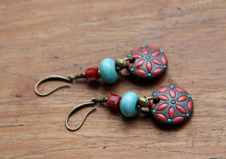 Red and turquoise, that’s not new (I started a necklace earlier but it’s still waiting for me to finish it).
