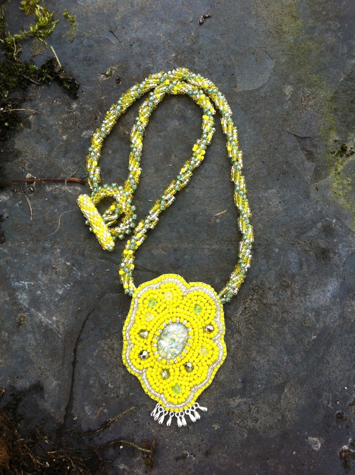 So I associated it with some green and here is my latest necklace, extremely yellow.