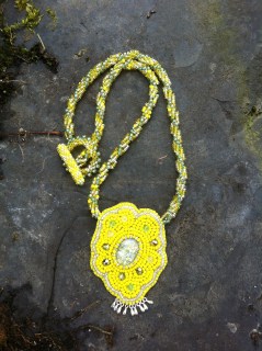 Alors je l’ai mis dans son écrin de vert et voici mon dernier collier très, très jaune.