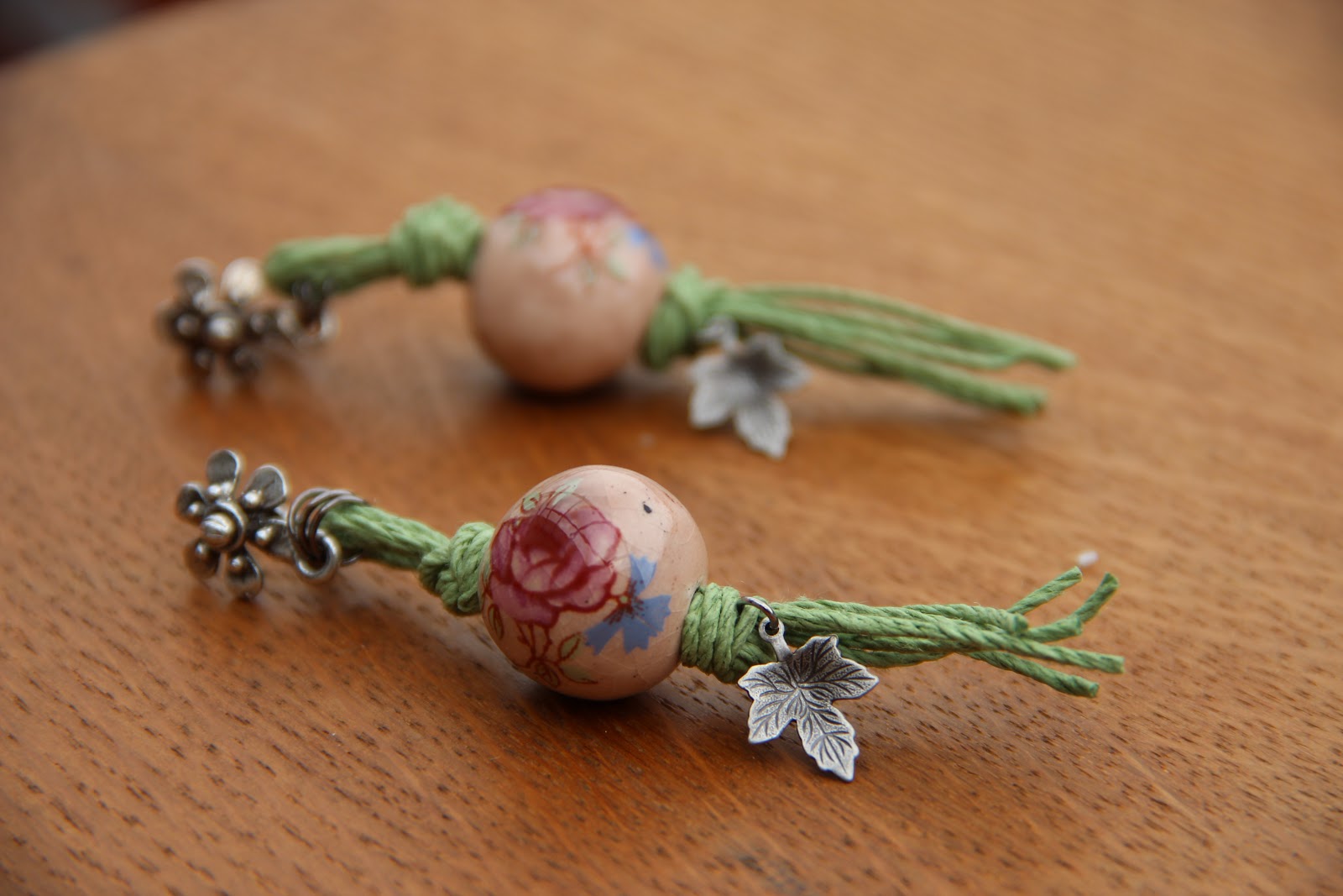 me voilà avec deux bracelets et une paire de boucles d’oreilles, d’inspiration romantique (cela devrait faire rire ceux qui me connaissent!) mais pas trop quand même…