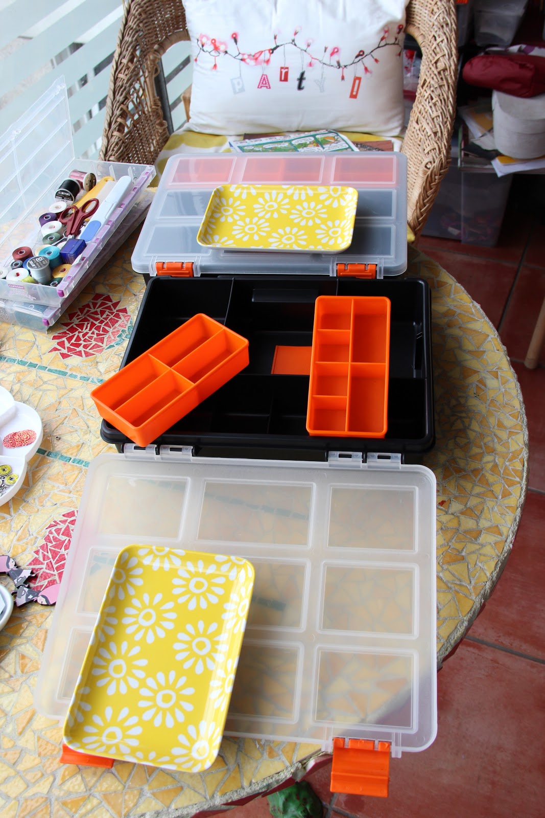 J’ai donc investi dans deux petits plateaux et deux grandes boîtes pour m’organiser!