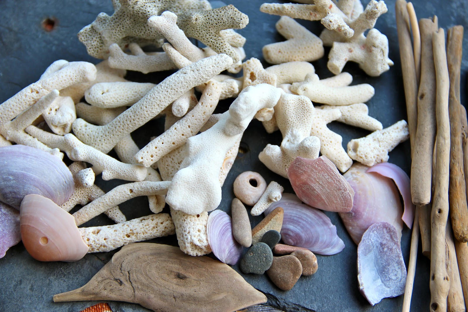 On our way back from school, Lou asked me if it was possible to make beads from coral. Of course, I told her that anything could become a bead. And then I thought about all those paper bags I keep in a big plastic box. Inside there are stones, shells, driftwood, acorns and dead coral. Souvenirs from Ireland, Croatia, The south of France,The Netherlands, Sweden, Italy or Thailand.