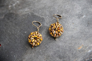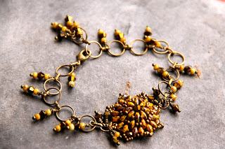 So I’ll show you matching bracelet and earrings I made some time ago from elements by Barbara Falkowitz issued in the two last Beadwork magazines.