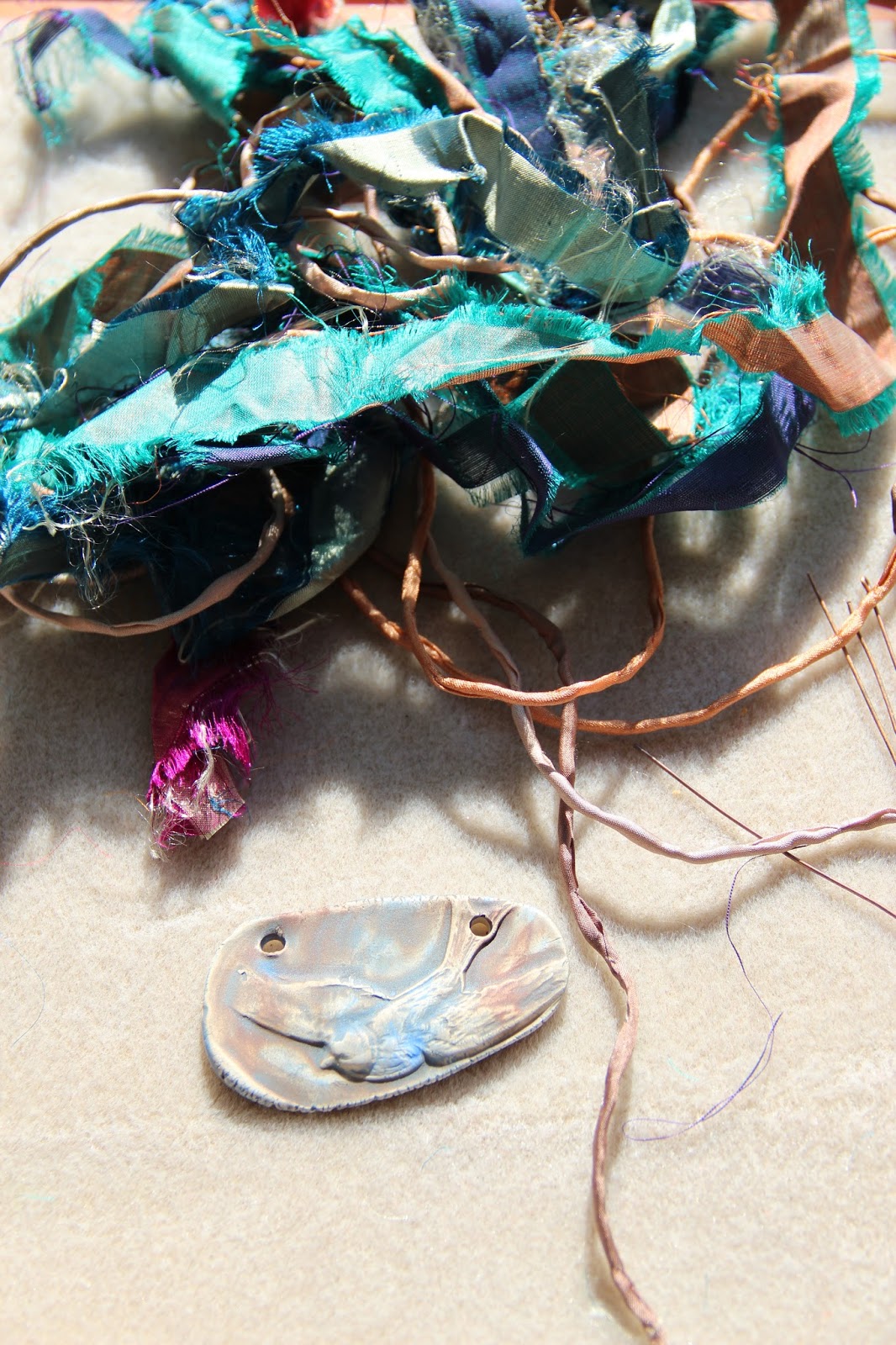 Then I chose a ceramic pendant by Birgitta Lejonklou from Angel Whisperer and tried to associate it with some recycled sari silk,