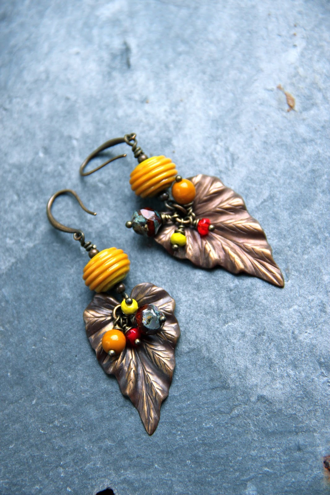 Pour me reposer de tout ce tissage et un peu en avance sur l’automne, une paire de boucle d’oreille.