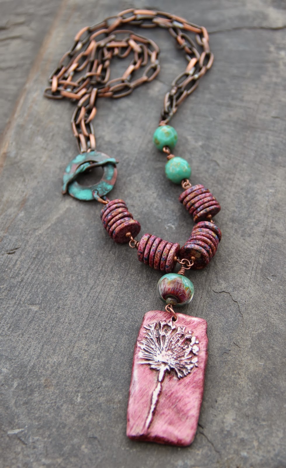 A glass bead from Fire Lily, Greek ceramic discs and a Supply Your Soul patinated toggle clasp.