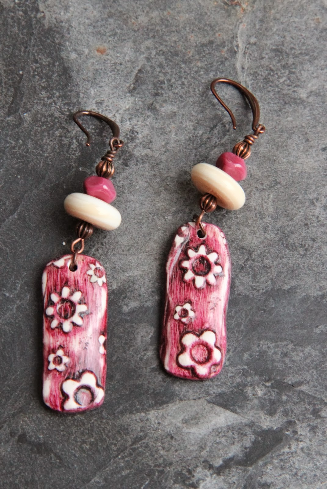 I took them all out, hesitated and chose the pink toned ones to make a pair of earrings and a necklace.