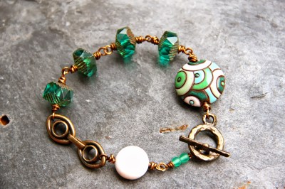 I’m going to use those chunky green and bronze transparent beads (I’m still on Emerald Isle).