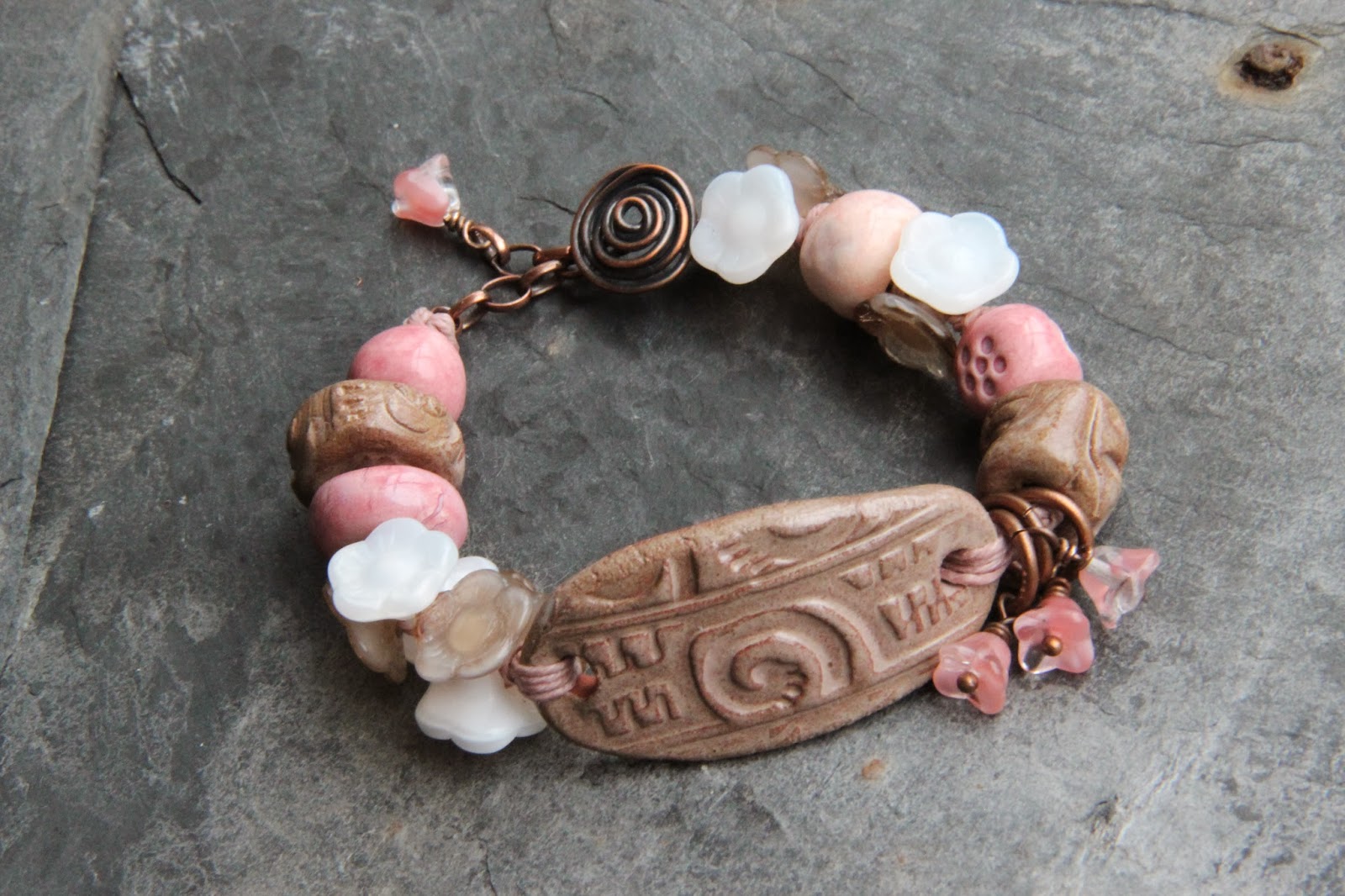 So the flowers, the waxed linen and the clasp are from the kit and I added some beads and a connector from Angel Whisperer, Gaea and Grubbi.
