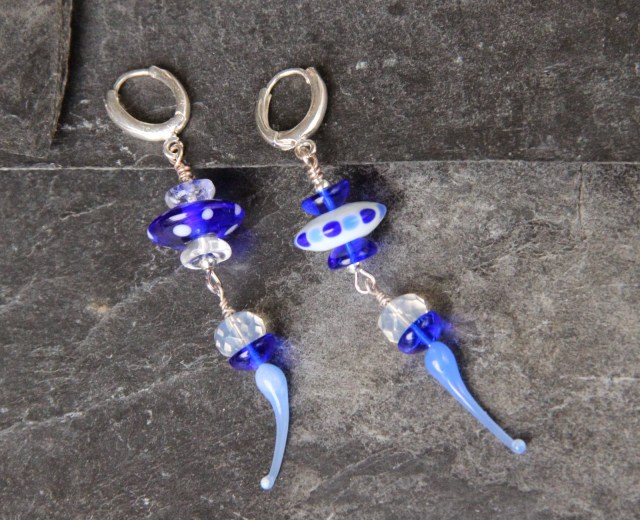 In The Curious Bead Shop Delft kit, two wonderful beads by Helen Chalmers. Asymetrical. Blue and white.