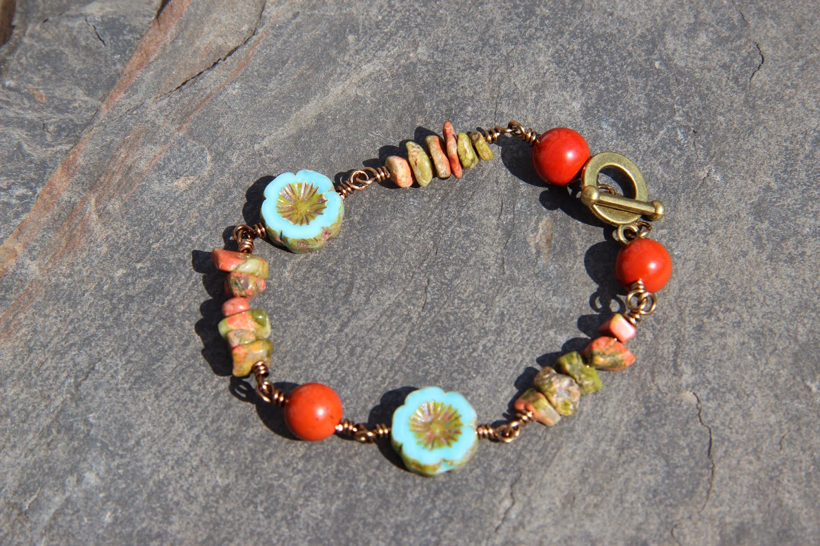 Another bracelet with the flowers combined with different stones.