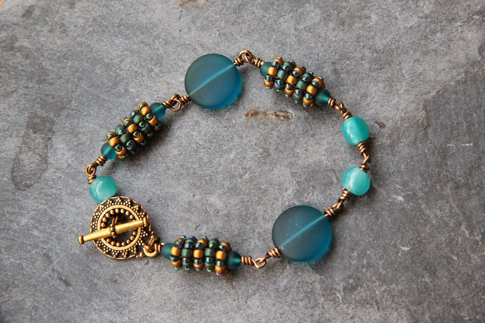 I wanted to make some beaded beads and I chose blue and gold seed beads.