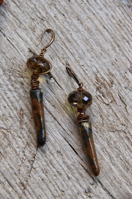 They were in shades of brown and I needed some to match some outfit, so I took some Scorched Earth spikes and whipped up a pair with a lot of bronze wire.