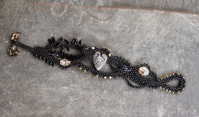3. Such a beauty Karin! I love that you chose to go with free-form peyote… it so beautifully echos the crashing waves of the sea. The subtle variations in the black beads and the pop of sparkling golden yellow give such a nice contrast to the little heart. I've always admired your skill with seed beads! Thank you so much for joining me in the challenge!