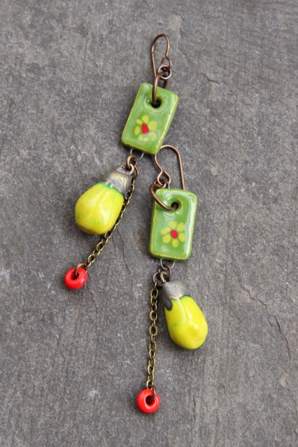 | Pendentif / Pendant, Jade Scott Perles en céramique / Ceramic beads, Grubbi |