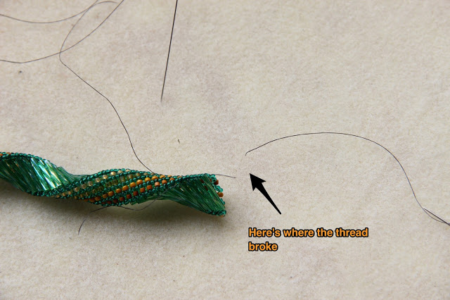 Bien plus facile, jusqu’à ce que le fil casse une fois. Ca arrive, je défais, je refais.