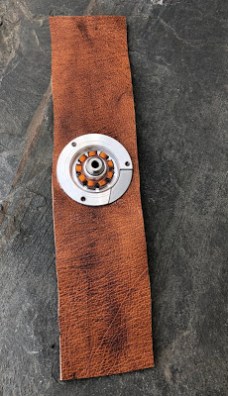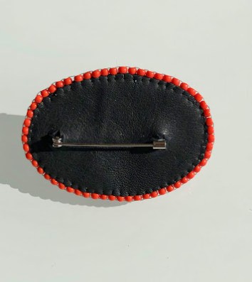 Ensuite, j’ai utilisé à nouveau les rondelles ainsi qu’une ampoule et des chutes de cuir achetées lors d’un voyage en Suède, pour faire une broche.