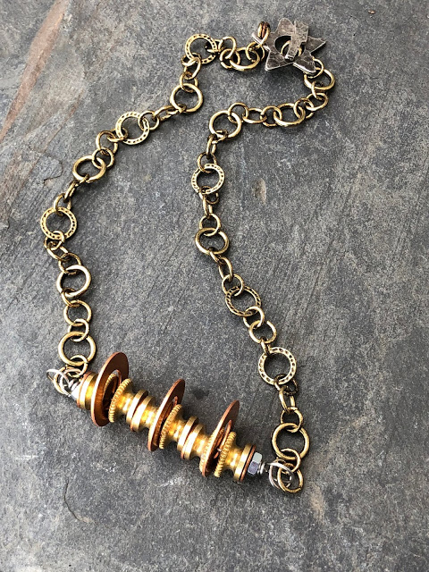 Before leaving, I used some of them to make a copper, brass and stainless steel necklace.