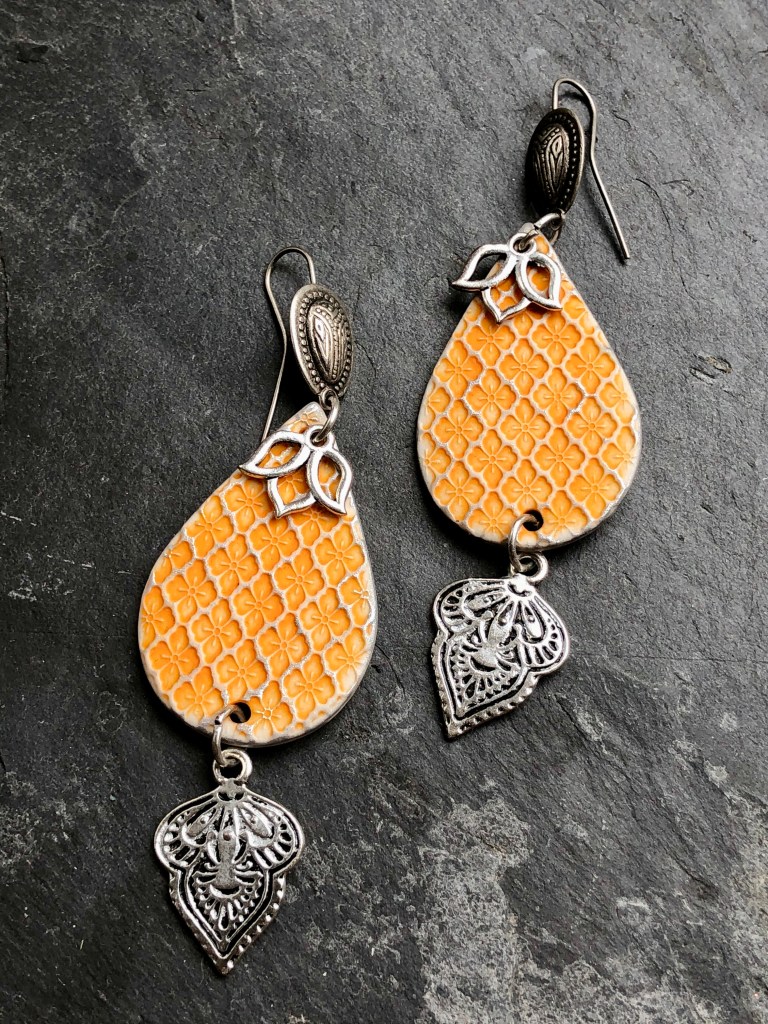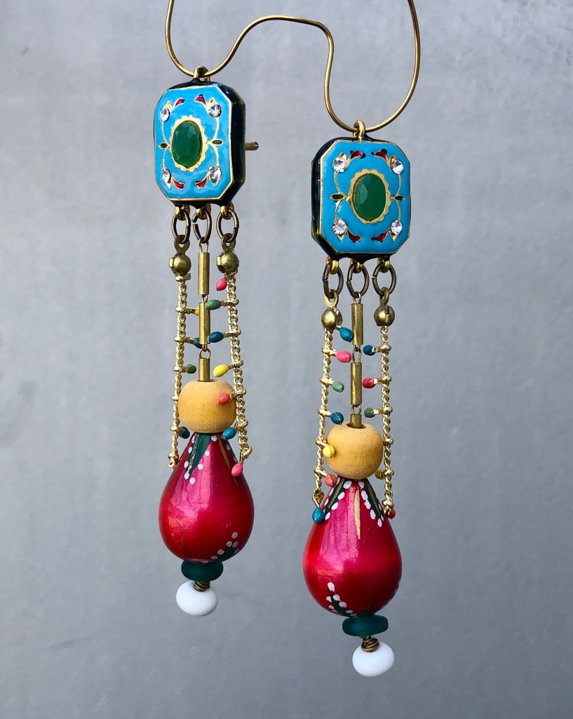 Le point de départ de ces boucles d’oreilles ont été les accroches pour oreilles envoyées d’Inde par Divya de Jewels of Sayuri. Je l’ai rencontrée à Paris l’année dernière, c’était formidable! Elles me rappelent ces rencontres inattendues et riches que l’on fait à tous moments, même confinés.