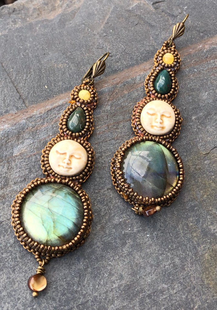 Crater cabochon, Maku Studio, face cabochon, Earthenwood Studio, Star dangles, Scorched Earth Designs