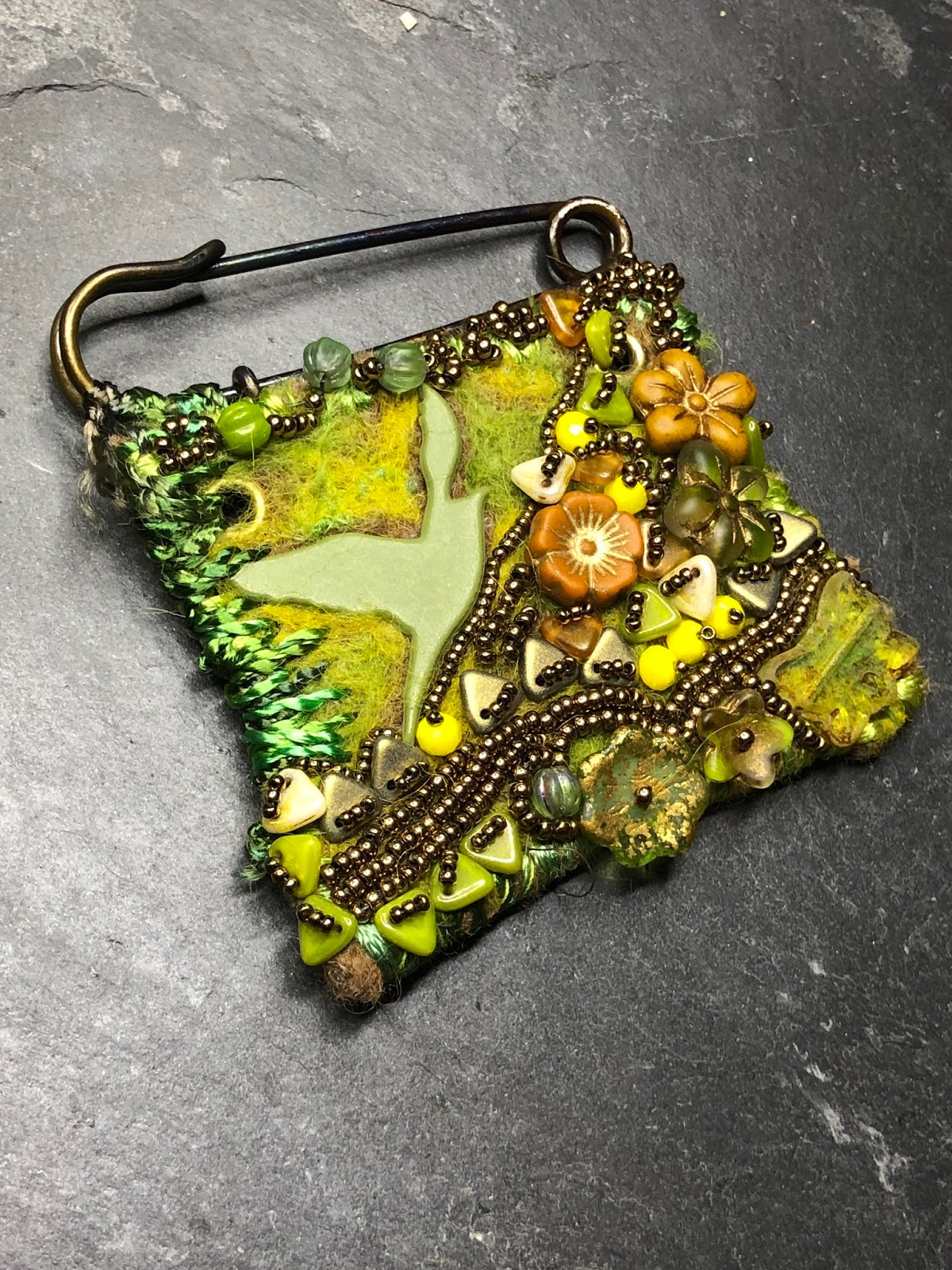 Then I took up a pendant I had started last April! Felted background and bead embroidery, but  it ended up as a brooch.