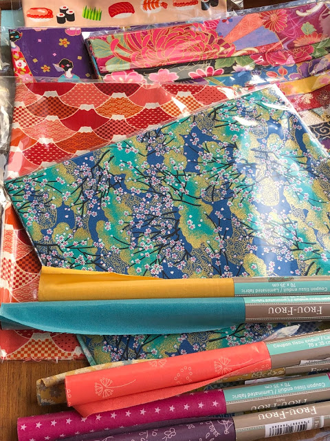 J’ai commencé par des tissus japonais de chez Kaetsu et de la toile enduite plus locale de chez Frou-Frou.