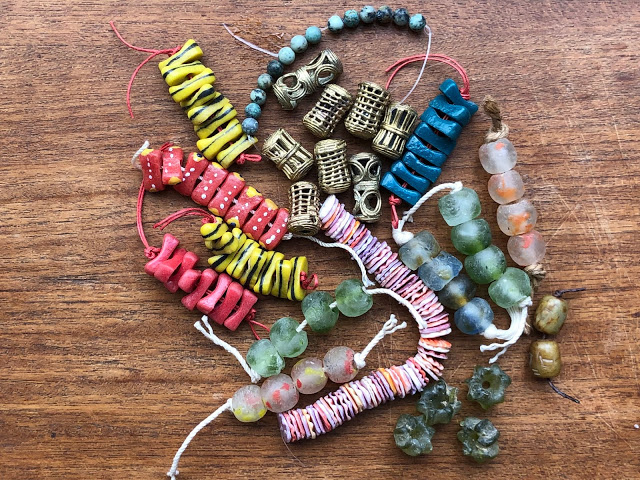 When I came home, here is what was waiting for me in my mailbox, some African beads I had ordered from Numinosity Beads.