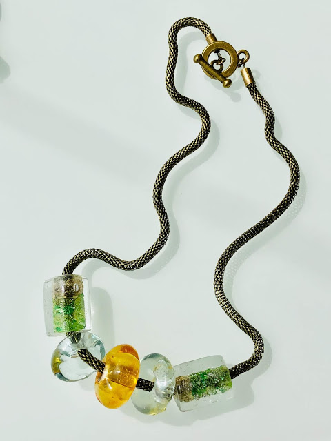 First came a necklace made from tubular chain bought in Crete and handmade glass beads bought in Rome.