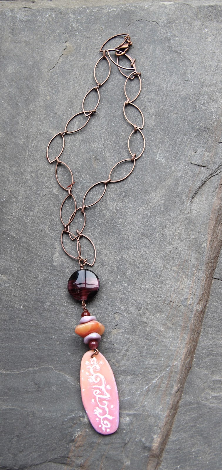 First came a necklace made from tubular chain bought in Crete and handmade glass beads bought in Rome.