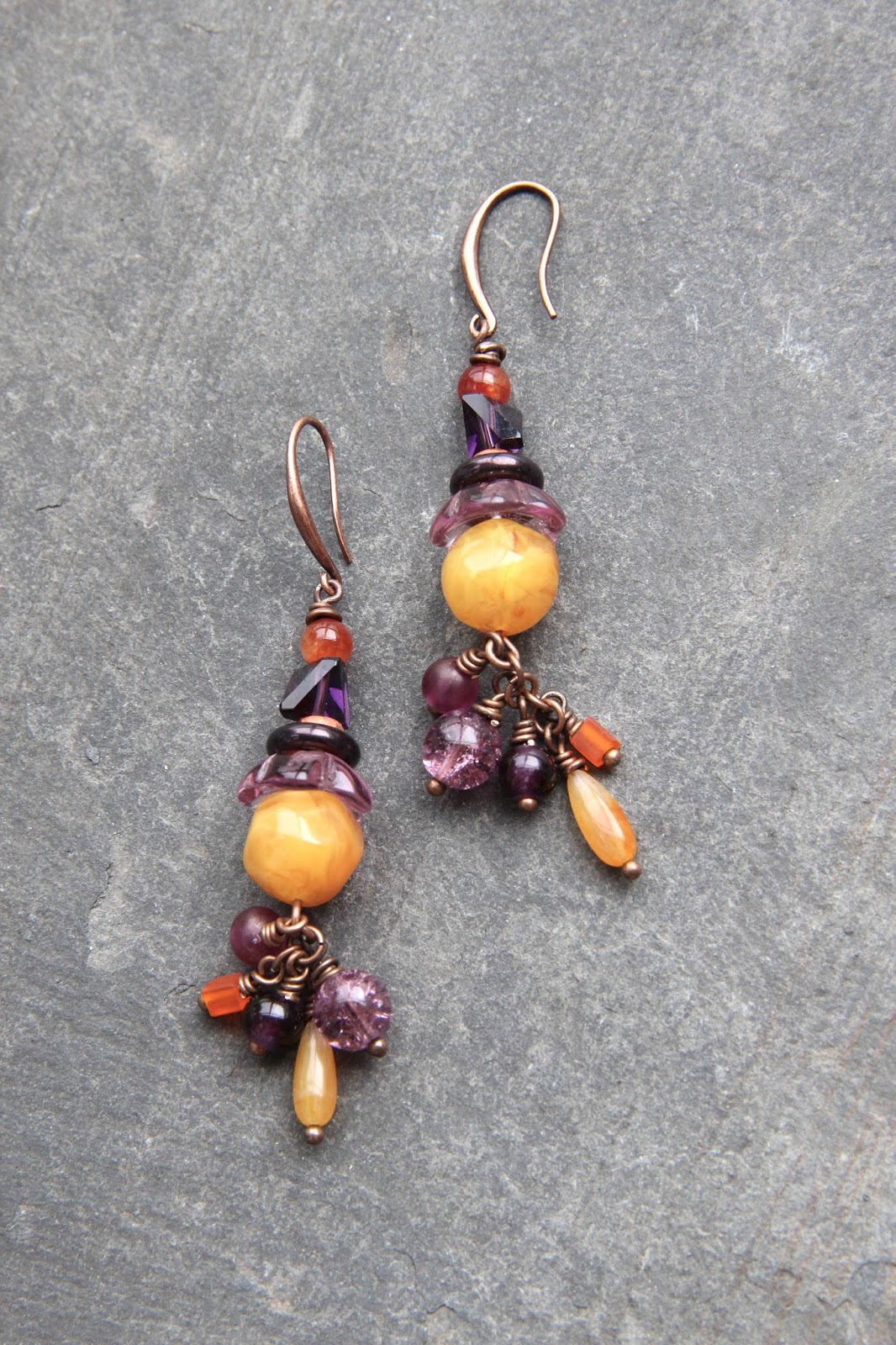 Finally, a pair of earrings with bright plastic drop beads which are most certainly part of my first orders from Etsy, over ten years ago!