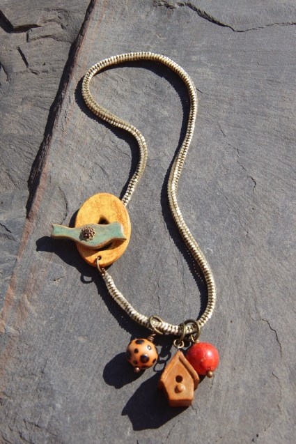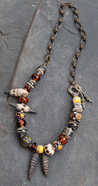 I liked the the eclectic forms, colors and subjects and I treated myself by using only Art Beads.