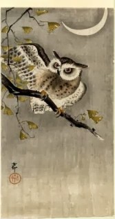 Owl on Gingko Branch (Scops Owl Under Crescent Moon) 1915