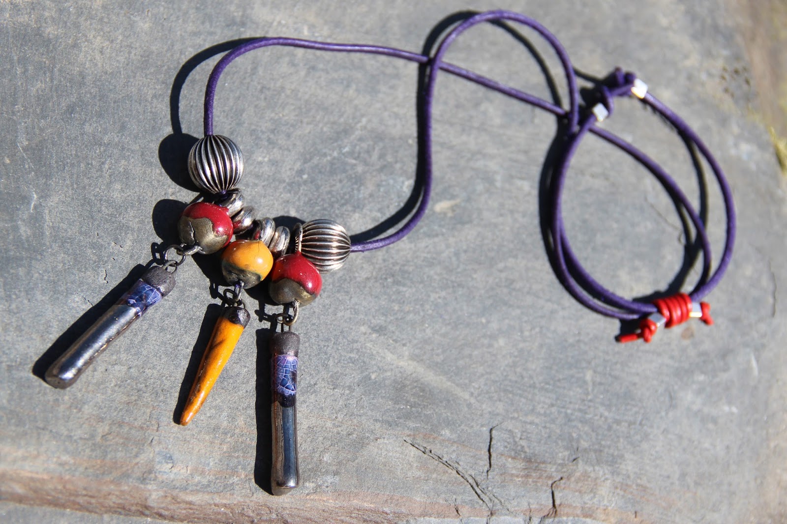 I started from the branch and I found this big ceramic Elaine Ray connector with a matching bead.