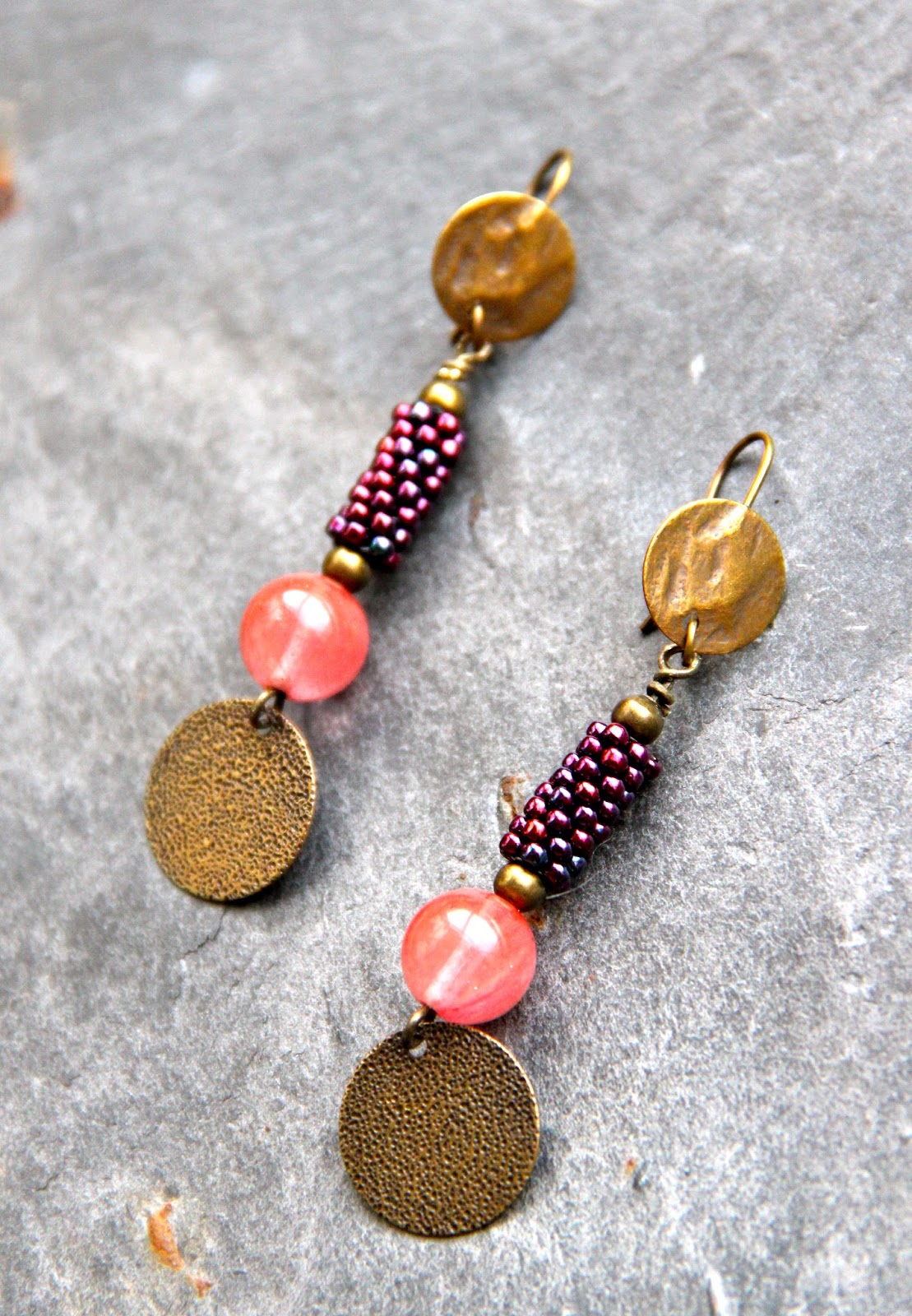 Des chouettes, j’en ai beaucoup, de toutes couleurs, formes et matières. J’ai choisi une des plus petite mais celle qui amenait de la rondeur, de Green Girl Studios, des perles en verre artisanales de Studio Juls pour la couleur et enfin la feuille de ginkgo.
