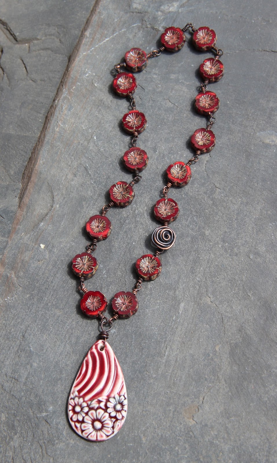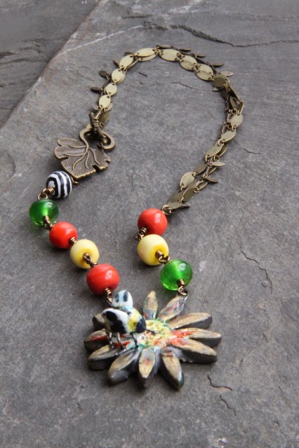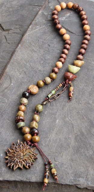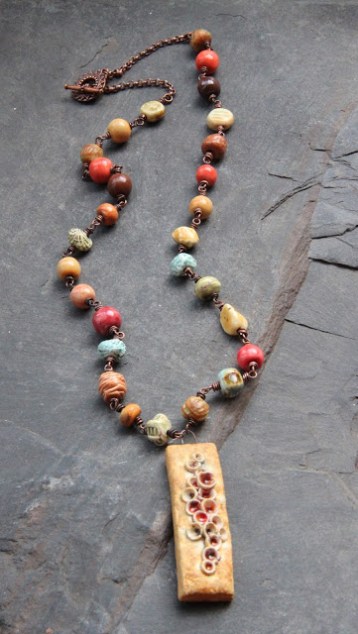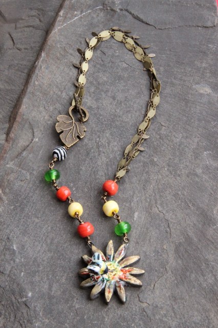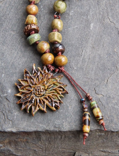 So I mixed, leather, metal, amethyst and hand made ceramic pendant.