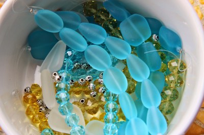 Here again, I started small with some earrings just adding a lamp work disk by Mermaid Glass.