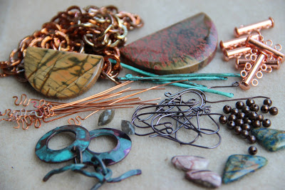 Copper goes from pink to blue green or dark brown. It can bend, roll, be turned into headpins, ear wires, chains or clasps.