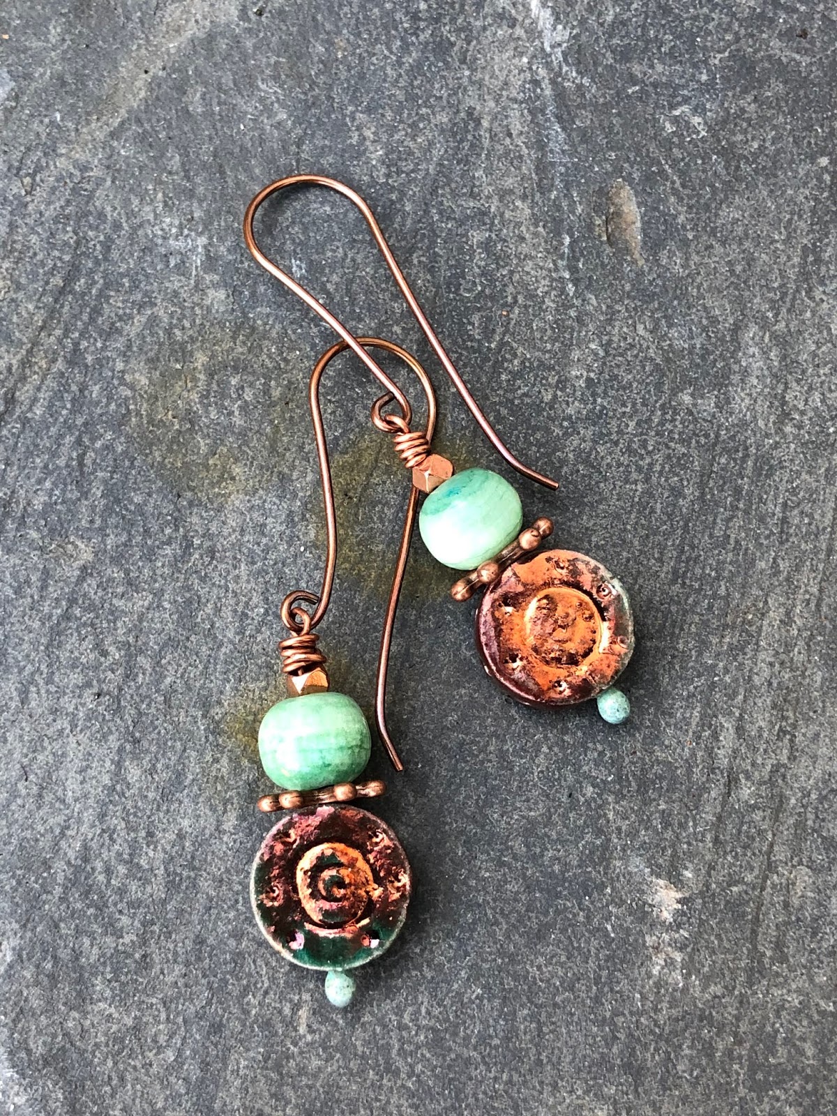 I could have kept them for the challenge, but I felt like making earrings, I looked for matching beads and took a break. I watched some pictures I had taken in Ireland and one of them made me think of other Scorched Earth dangles.
