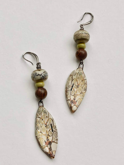 I’m taking part in the Art Elements monthly challenge and the theme this month is, forest. So I decided to start early and go through my stash of everything to find what would start the process. I ended up with a tray full of beads. Among them, there were two Scorched Earth dangles with Gustav Klimt’s Tree of Life.