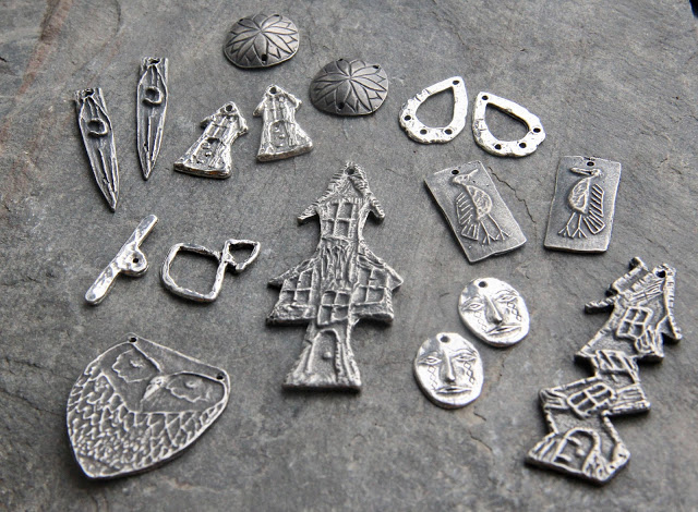 Then came a necklace made from chain thrifted from Emmaüs, and lots of dangles, carved stone animals bought from Kimberly Rogers at Numinosity Beads, Ex-votos bought from the Allegory Gallery and tiny stones.