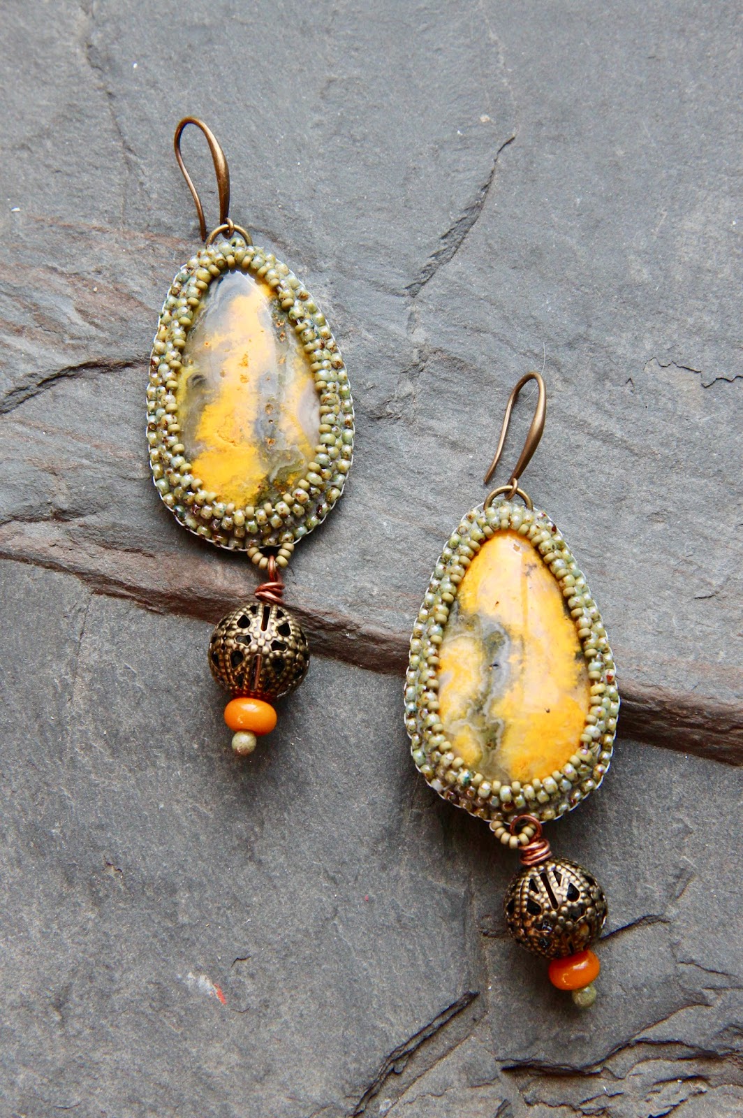 To get over yesterday’s beading mishaps I embroidered these earrings.