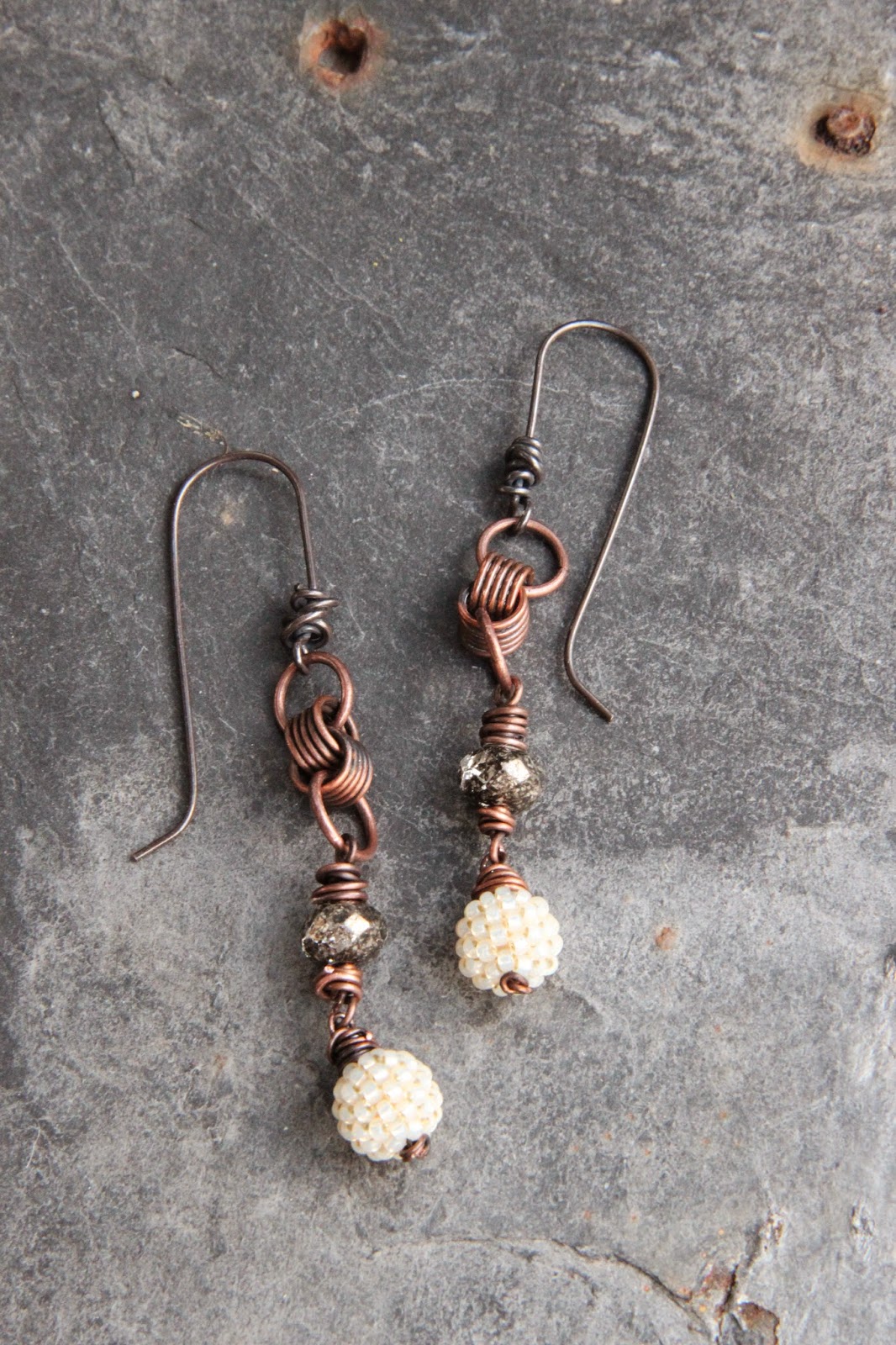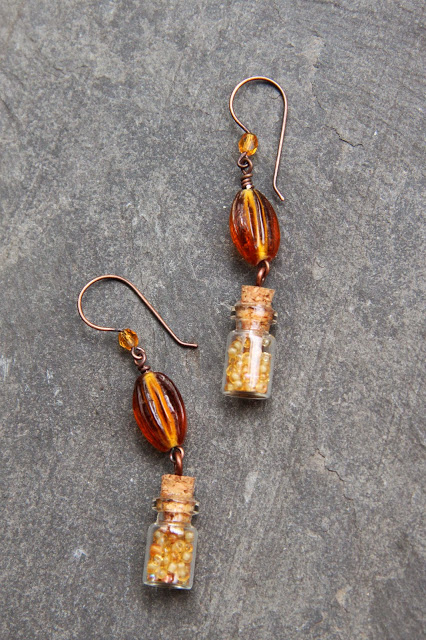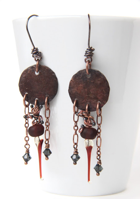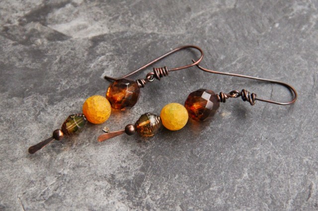 Et pourquoi pas une paire de boucles d’oreilles pour l’accompagner? J’ai aussi fait des tiges. Et puis j’ai reçu de magnifiques crochets d’oreilles en cuivre de Faerystones.