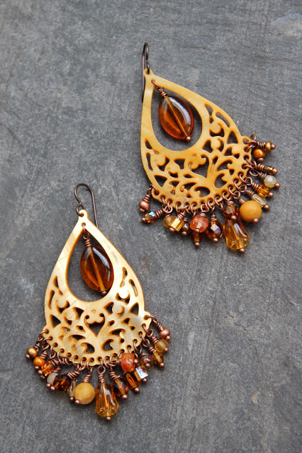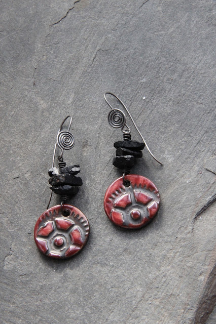 And why not a pair of earrings to match? I made paddle head pins. And I received those beautiful ear wires from Faerystones.