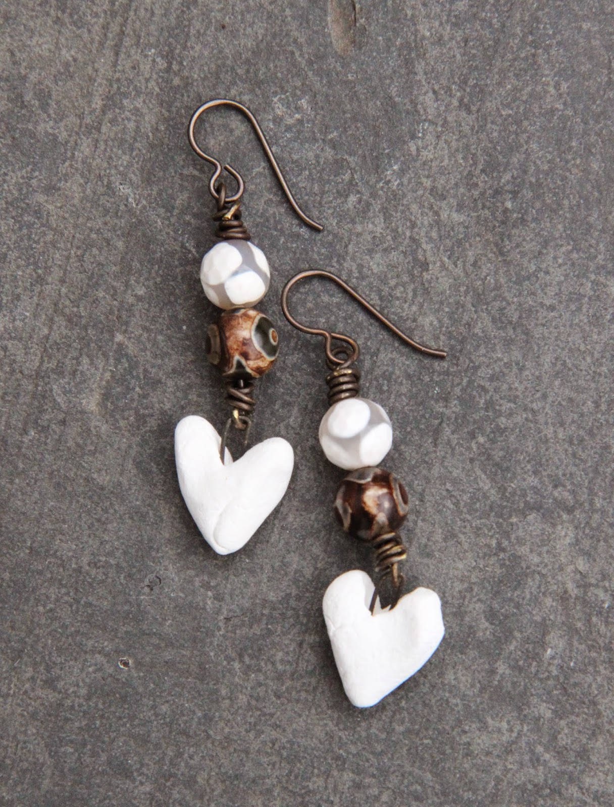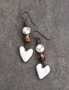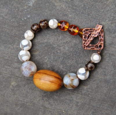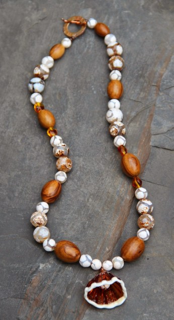 Finalement, je me suis basée sur les autres couleurs, ocre, jaune, marron pour faire un ensemble: un collier, un bracelet et deux paires de boucles d’oreilles.