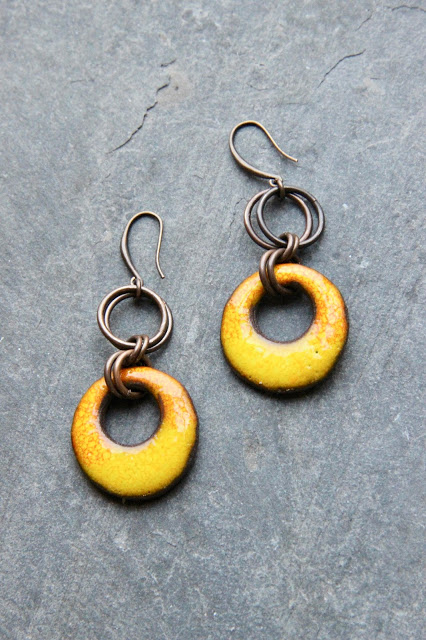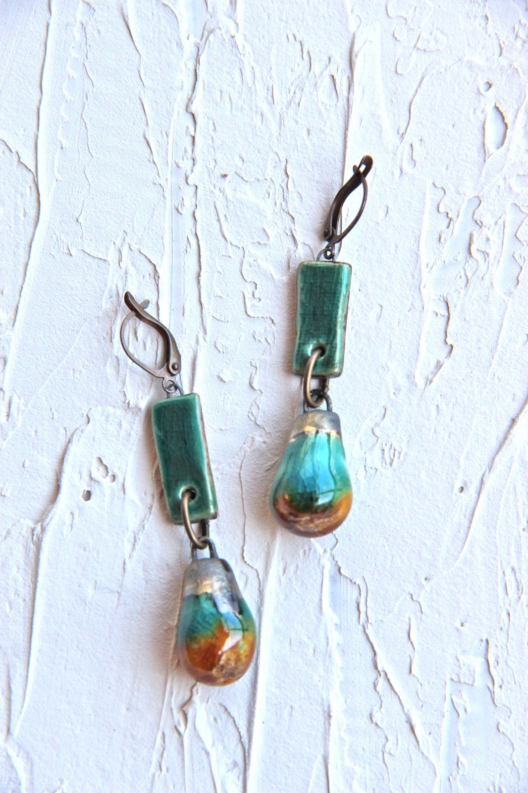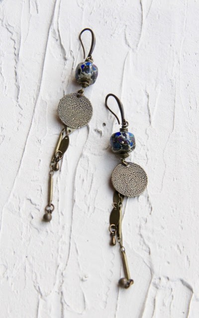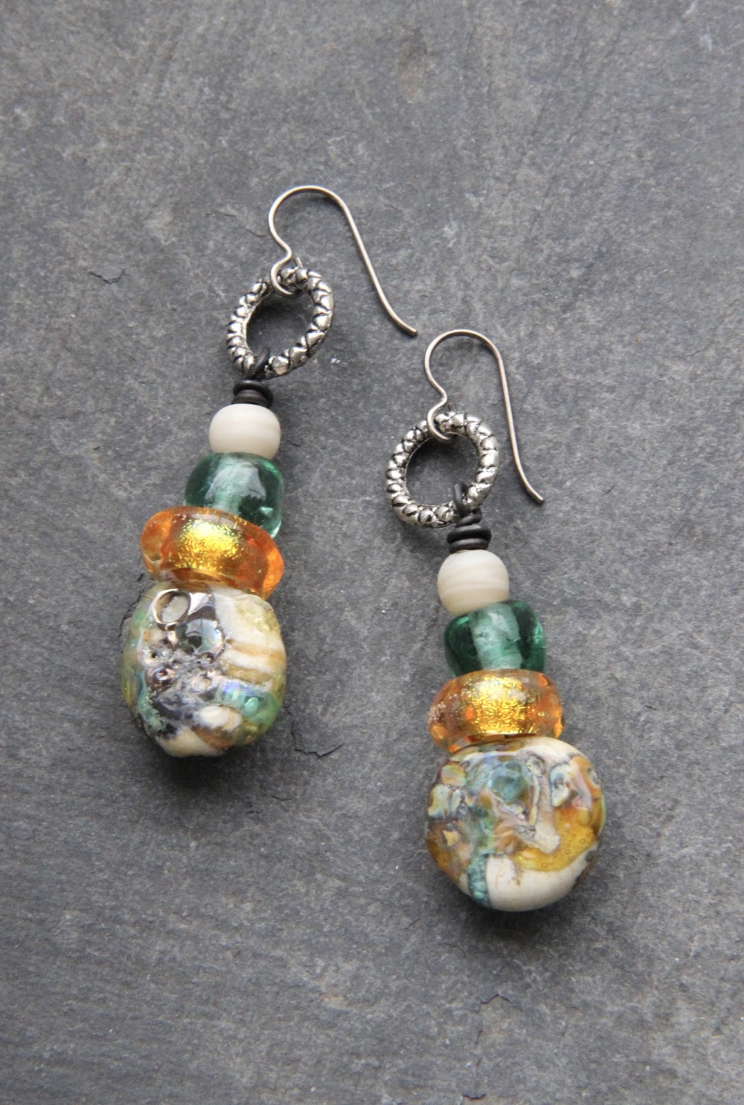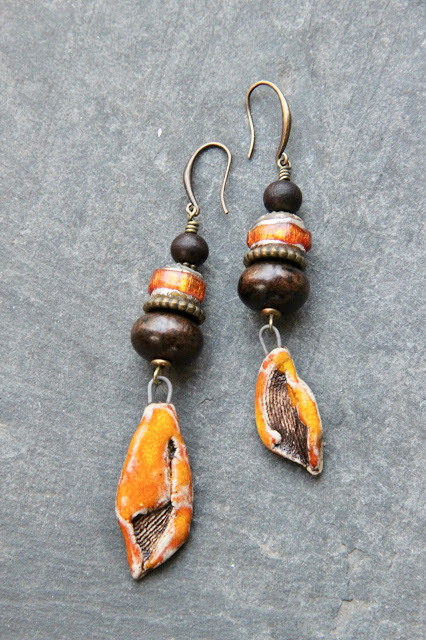 I could have kept them for the challenge, but I felt like making earrings, I looked for matching beads and took a break. I watched some pictures I had taken in Ireland and one of them made me think of other Scorched Earth dangles.