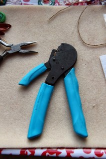 Jusqu’à ce que je retrouve des perles intercalaires plates, mais là fini les cordons, il faut un fil fin et solide car les grosses perles sont lourdes. Donc du fil câblé et des tubes à écraser et donc ma nouvelle pince.