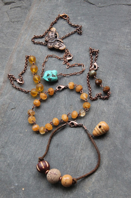 First make of the year, from a ceramic bead that reminded me of a blanket. I went on with the red bamboo coral beads and then it felt like a cosy winter night around the fireplace. I only needed a cup of tea.