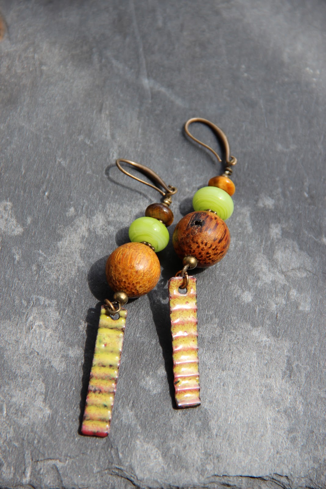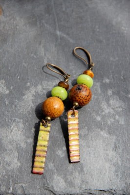 Aujourd’hui je me suis souvenue de perles en pierre ovales dans les tons jaunes et la suite est venu rapidement, jaspe paysage et aqua terra, perles en verre de